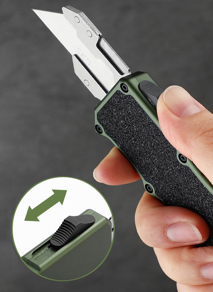 Caressolove Aluminum Alloy Box Cutters Retractable Heavy Duty Multifunctional OTF Automatic Work Knife Dismantling Express Delivery Unpacking Multi-purpose Replaceable Blades Utility Knife