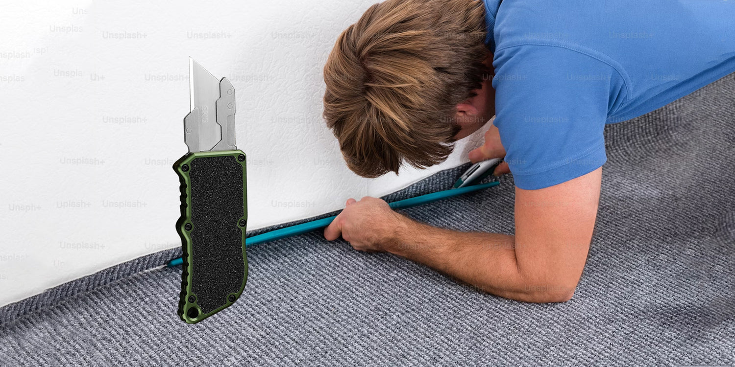 Caressolove Automatic Utility Knife, Green Razor Blades Pocket Knife, Box Cutters Retractable Heavy Duty, Premium Safety Push Button Knife with 5PCS Blades