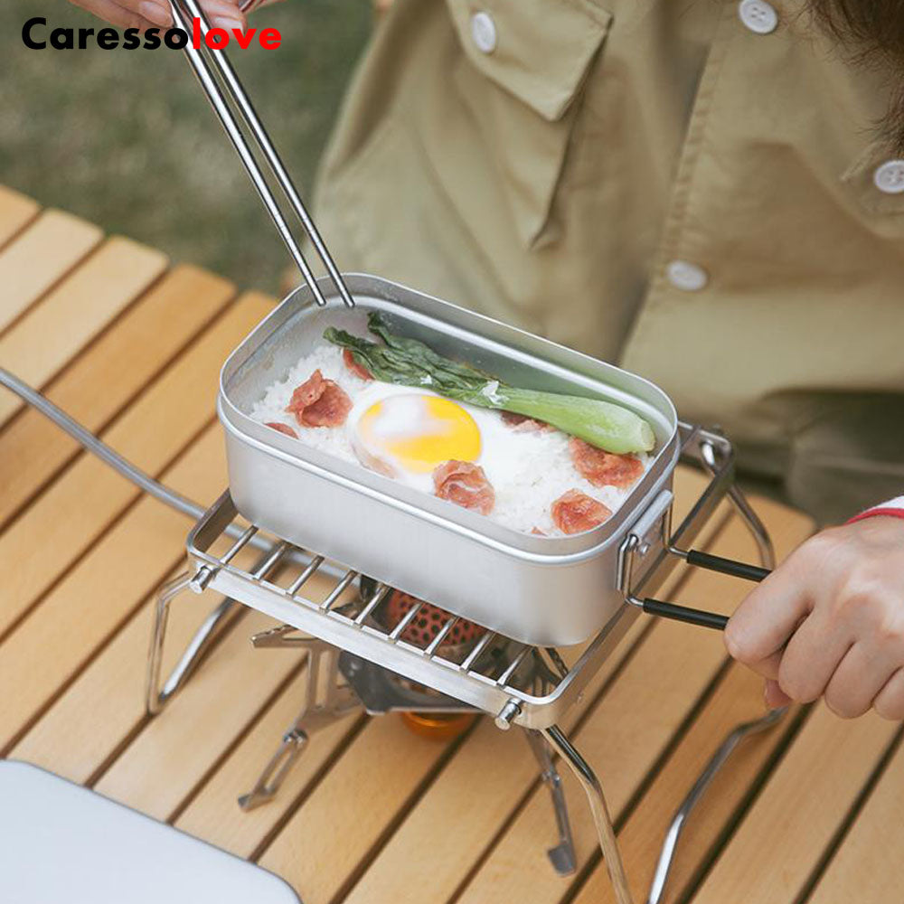 2. The bento box can be heated over a fire, allowing you to use it as a skillet to cook delicious meals while camping outdoors.