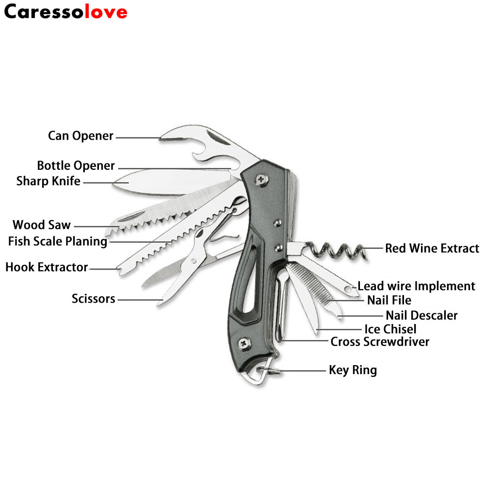 Caressolove 14-in-1 Outdoor Multi Tools Swiss Knife, Keychain Multitool Folding Knife Bottle Opener Scissors Saw, Portable Military tactical Foldable Pocket Knife For Camping Hiking