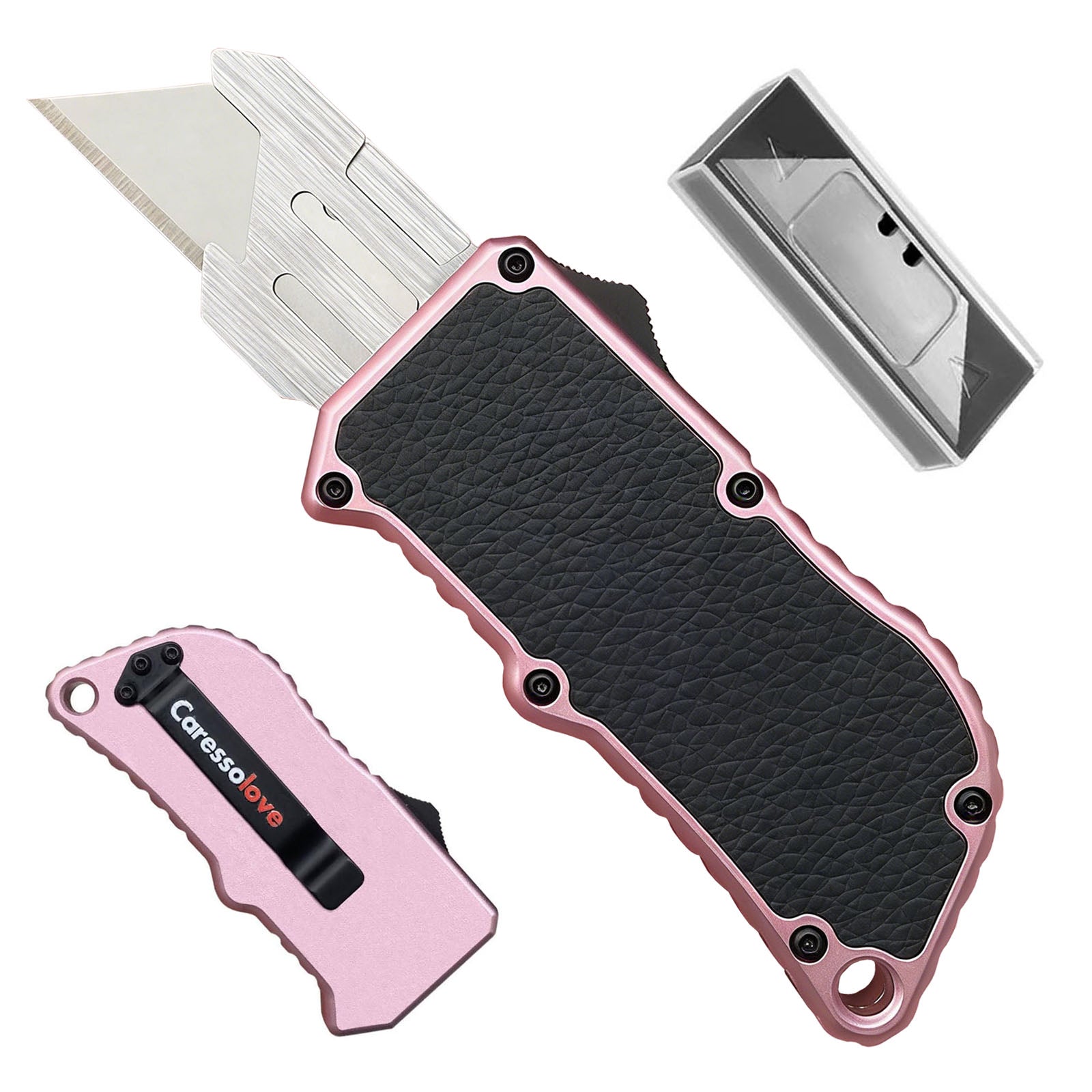 Caressolove Pink Automatic Utility Knife, Safety Heavy Duty Auto Retractable Box Cutter, Replaceable Razor Blade Knives
