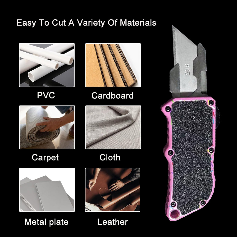 New stylish design of pink colors for you with mavericks and strong characters.The utility knife is made of aluminum alloy.Handle with ergonomic design principle, comfortable to hold and prevent hand slipping.
